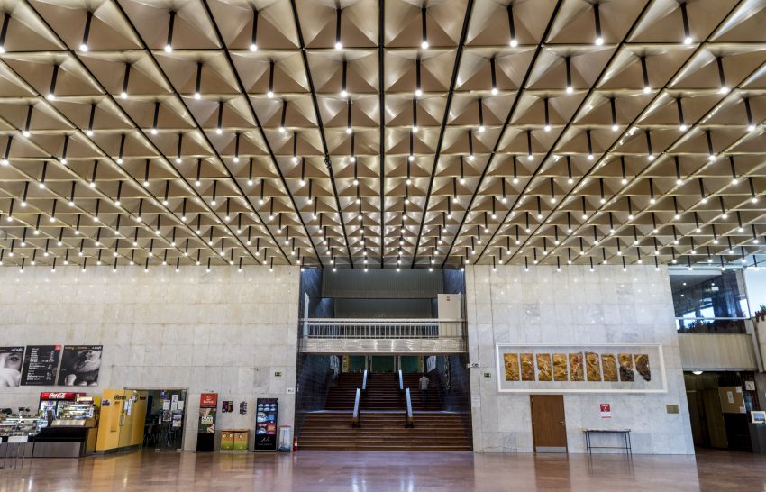 A pesti látképből mai napig kiemelkedik a Semmelweis Egyetem Nagyvárad téri Elméleti Tömbjének épülete. Az ország legmagasabb középülete 1978-ban készült el, és nemcsak magassága, de az aulában látható, Hincz Gyula készítette ólomüveg alkotása is legalább annyira nevezetes. A 22 emeletes épület belső terei tökéletes helyszínül szolgáltak A brutalista egyik jelenetéhez, a film talán egyik nyugvópontjához, ahol László a kezdeti megpróbáltatások után rajzolóként dolgozik többedmagával egy építészirodában.