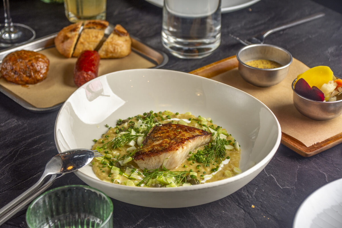 Ha a klasszikusabb ízek felé vennétek az irányt, válasszátok a cigánkával, házi mustárral és kovászos kenyérrel tálalt lángolt kolbászt, amihez a helyben készült savanyúság is remekül passzol – ezeket egyébként a bárpult feletti polcon is megtaláljátok, ahogy befőttesüvegekben várnak a felszolgálásra.
