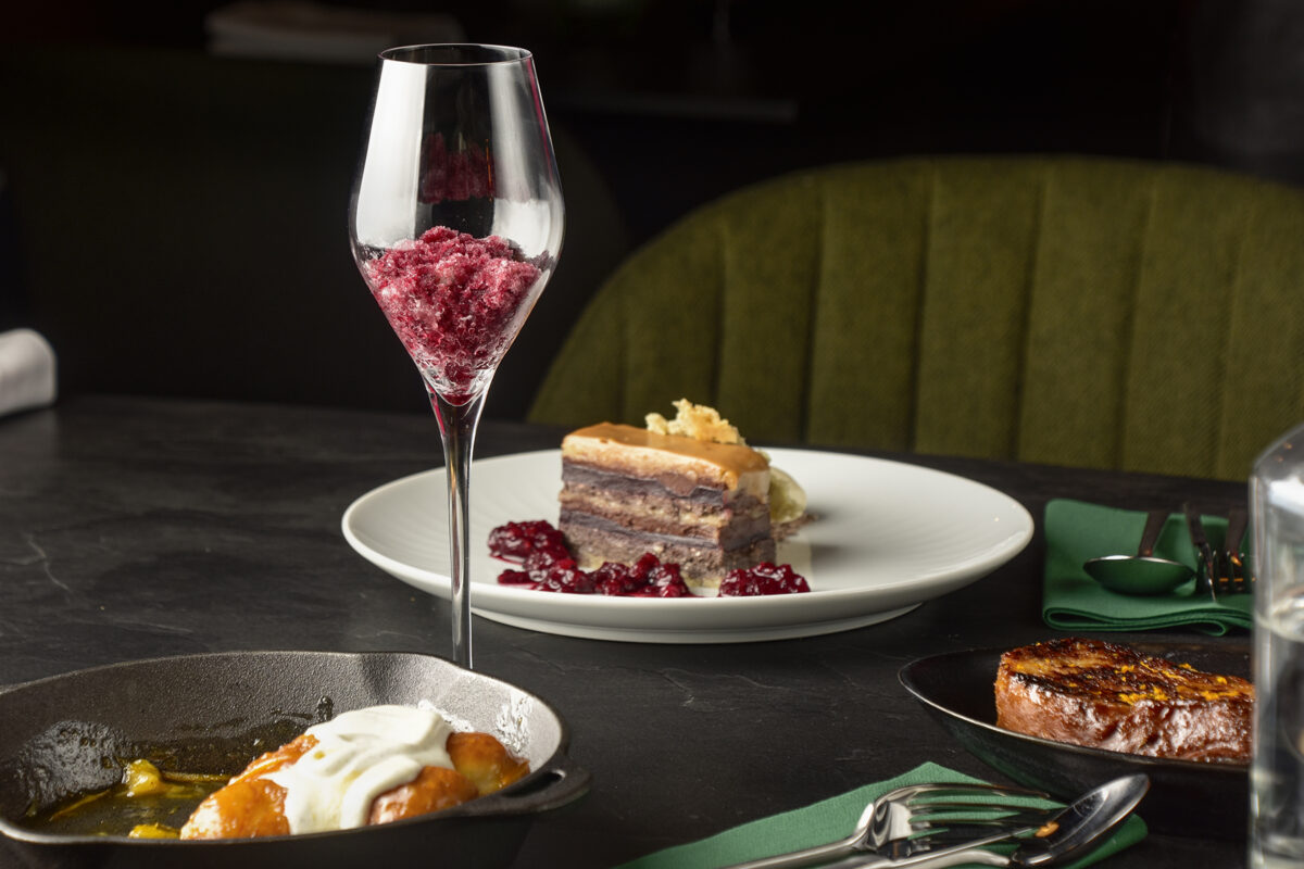 Már jóllaktunk, amikor felvonultatták a szebbnél szebb desszertkreációkat, aminek egyszerűen képtelenség volt ellenállni. Nem is csoda: a mézeskalácshabos, forraltbor-granitával meghintett gyümölcskenyér, a sós karamellás-csokoládés sütemény, illetve az előttünk flambírozott, vaníliaöntettel és fahéjjal tálalt farsangi fánk mind kihagyhatatlannak bizonyultak.