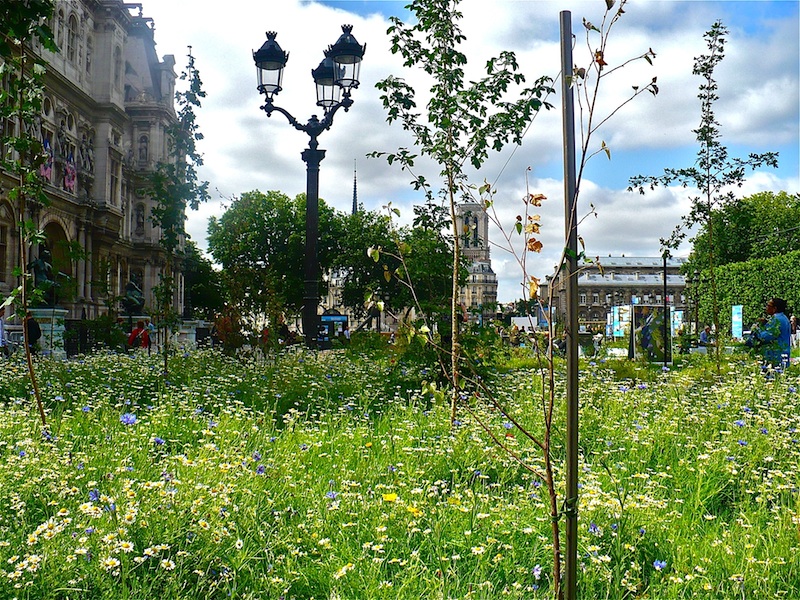 Bring a book, a sandwich, or a friend and enjoy the ephemeral garden, free and open to the public on the plaza in front of Hotel de Ville until it vanishes July 12.