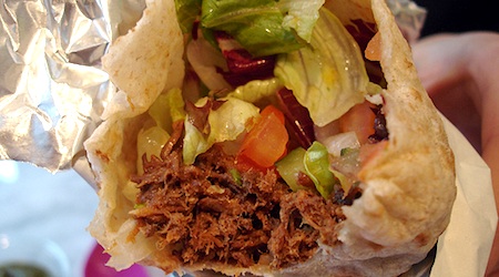 Take a bite of the Goan Pork wrap at Moolis in Soho. Photo: Su-Lin