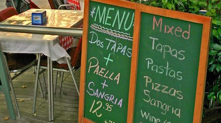 Often chalked up on a board on the sidewalk, the “menú del dia” is a national institution. For a fixed price you’ll be offered a choice of, say, six starters and six main courses.