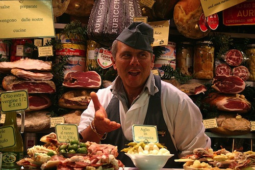 Many small businesses only take cash, so prepare to pay up in euros to local merchants like this one at a butcher shop in Florence. Photo: Frank Kovalchek