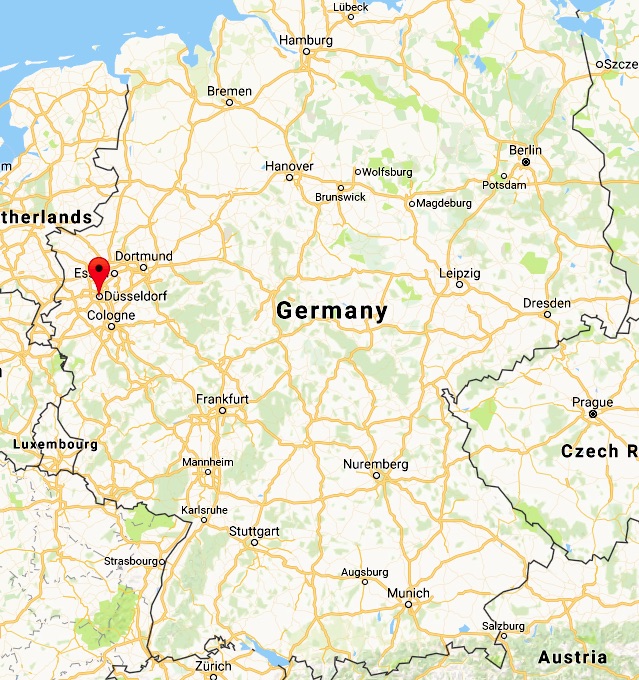 Dusseldorf is located near the western border of Germany and is part of an industrial-rich cluster of cities that includes Dortmund (just north of Dusseldorf) and Cologne (just to its south).