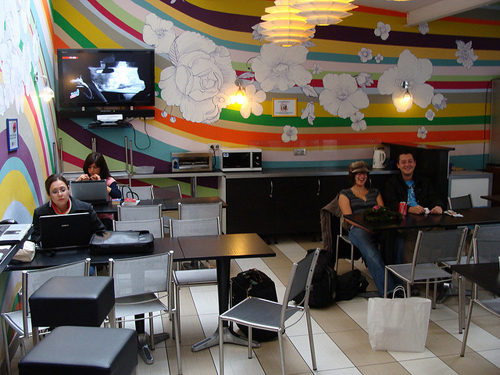The stylish and always social communal area of Oops! Hostel offers free Wi-Fi access. Photo: Dan Cunningham