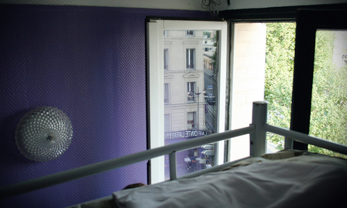 The view of Canal St-Martin from a top bunk at Peace and Love Hostel. Photo: Chrissy Hunt