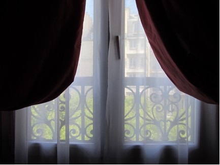 The double sets of curtains mean you can gaze out over sunny Paris in privacy, and then shut out the light altogether if you’d like to catch some shuteye: