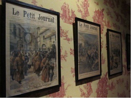 Some of the corridors feature old covers of Le Petit Journal, a popular French newspaper: