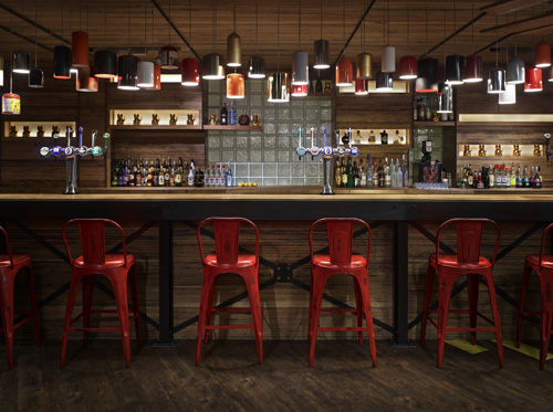 In terms of looks, the makeover is pretty impressive. There’s a London theme throughout, from the Mind The Gap signs to the huge red double decker bus in the bar used by DJs on club nights. In the café area, the comfy seating and the wingback chairs make it a more attractive place to hang out and check your emails than many other London cafes.