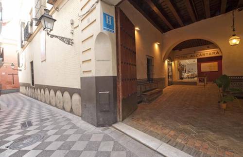 The impressive entrance to Alcántara Hotel.