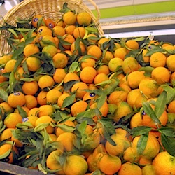 During the colder months, clémentines à feuilles (i.e., with green leaves still attached to show how fresh they are) reign at the produce stands in Paris. You’ll also be tempted by big, bright pyramids of citrons (lemons), cédrats (citrons), and pamplemousses (grapefruit), not to mention tangerines, limes, mandarines, and oranges.