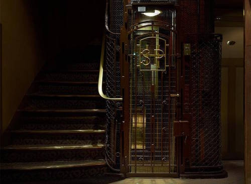 Ride in style in the old-fashioned elevator at Hotel Saint-Pierre.