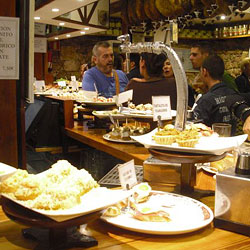Cod croquettes or shrimp brochettes go perfectly with a drink of txakoli, the region’s sparkling wine.