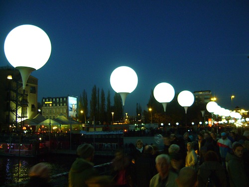 The lights stretching as far as you can see along the East Side Gallery. Photo: Craig Nelson