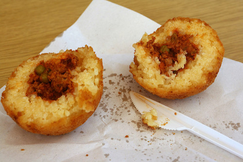 The center of an Italian rice ball is where you’ll find the good stuff. Photo: Wim
