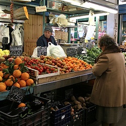 At the markets, as well as in the supermarkets, all produce is sold by the kilo, so it’s always a good idea to ask how much something costs if you are not sure. You can also order by price. In this case, you would say, for example, “I’d like €3 of apples.” This way you will always know exactly how much you’re spending, especially if you are not familiar with metric quantities.