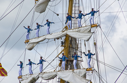 Tall people on tall ships in Amsterdam. Photo: Bert Kaufmann