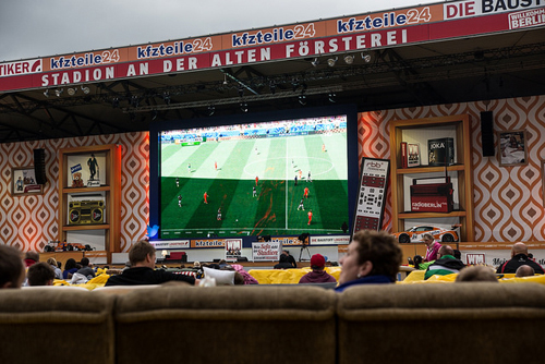The WM-Wohnzimmer (World Cup Living Room) is this year’s newest and perhaps most surprising public viewing venue. The Stadion in der Alten Försterei is the home field of one of Berlin’s local soccer teams, FC Union. During this year’s World Cup run, they took applications and parcelled out spaces for couch parking across the field, creating a giant living room atmosphere for watching broadcasts on their big screen. Don’t worry, however—even if you don’t have a couch, you are still welcome to sit in the field’s bleachers and watch the game. They open up seating on game days at 6 PM, and it’s certain to be full for the final match, so show up early to get a good seat. Security regulations are similar to the Fan Mile, but bringing your own food and beverages, unfortunately, is not allowed.
