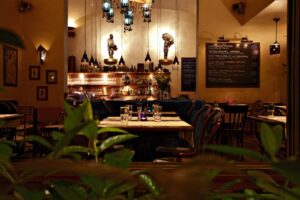 Another entry from the bustling Liszt Ferenc tér, radio show host Ferenc Rákóczi’s Korhely Restaurant is a musically enhanced gastro pub that focuses on Hungarian dishes prepared with locally sourced ingredients like truffles from Bakony, cheese from Etyek, and sausages from Bátaszék and Békéscsaba. Compared to other restaurants in the neighbourhood, prices at Korhely are quite wallet-friendly – for instance, a portion of flambéed Gundel-style pancakes costs no more than 1,500 HUF. Couple that with the fresh, homely flavours of the venue’s nourishing meals, the attentive service, and the gorgeous evening view of Music Academy on the opposing side of the square, and you have the makings of a great time.